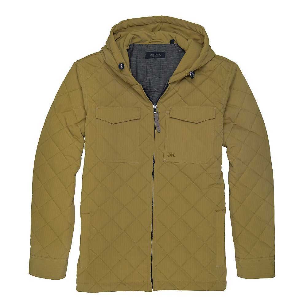 The Dakota Grizzly Men's Garrett Jacket is built for outdoor adventures. With a quilted water-resistant shell and 18 GSM polyfill insulation, it provides superior warmth and protection against the elements. Its adjustable bungee hem and hood ensure a customized fit, while the hidden zip chest pocket and interior zippered pocket offer secure storage.