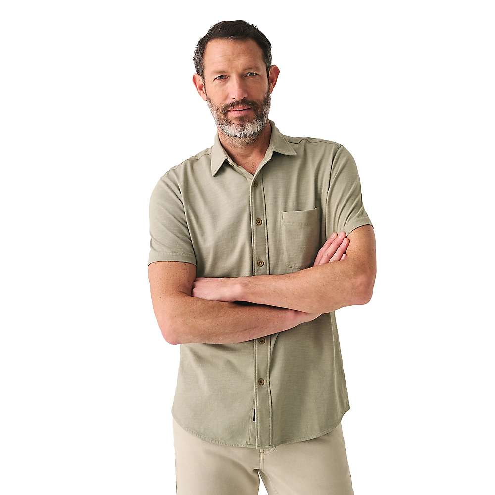 The Faherty Men's Knit Seasons SS Shirt combines laid-back style with sustainable craftsmanship. Crafted from 1% organic cotton, this relaxed-fit button-down keeps you comfortably cool with its breathable fabric and short sleeves. Its classic spread collar and single chest pocket lend a timeless look.