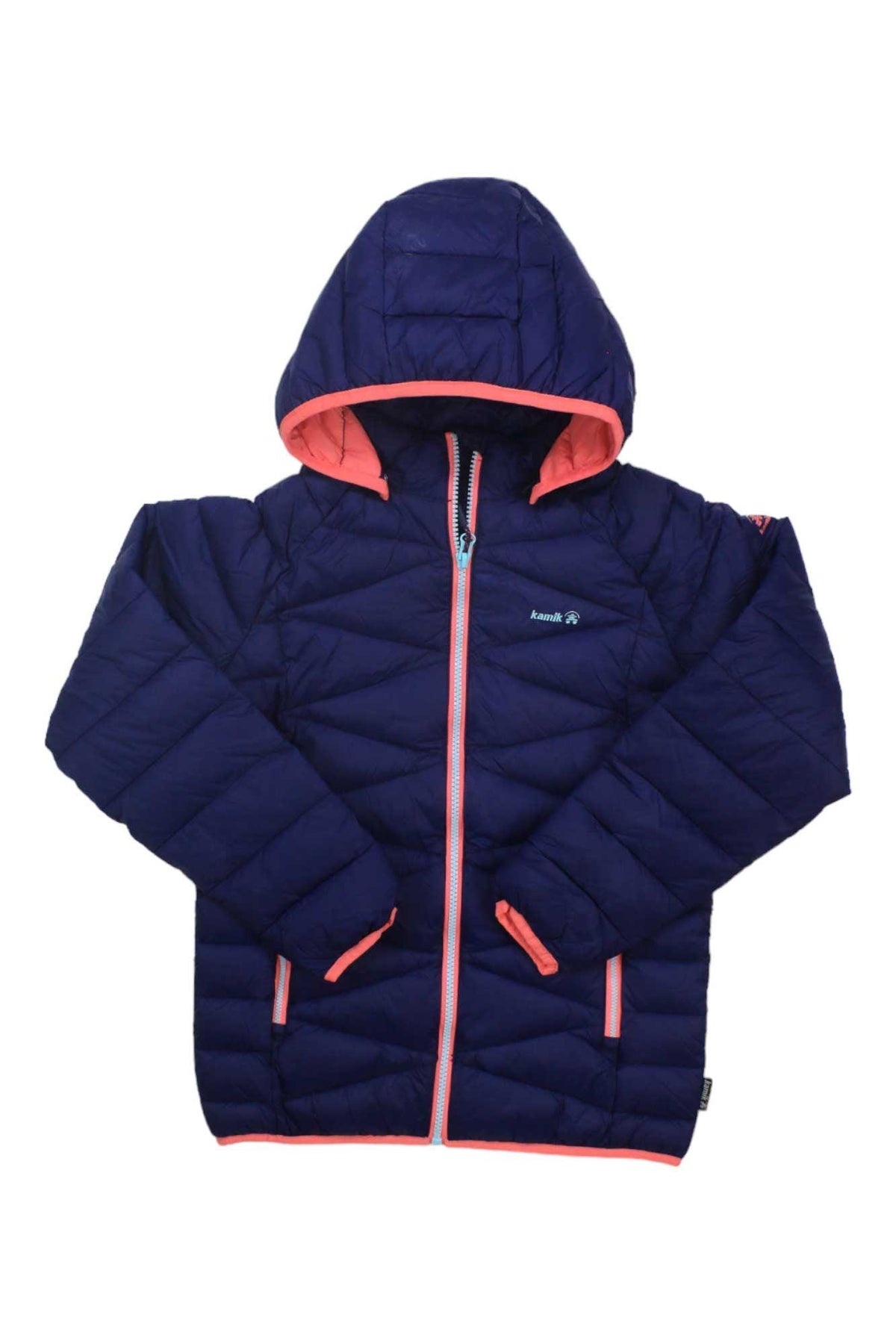 The Kamik Girl's Adele Jacket is an insulated, stylish wonder that keeps your young adventurer toasty during outdoor winter fun. Its quilted blue design with contrasting pink accents offers a fresh, youthful vibe, while the insulated material, full zipper closure, and detachable hood ensure superior warmth and protection.