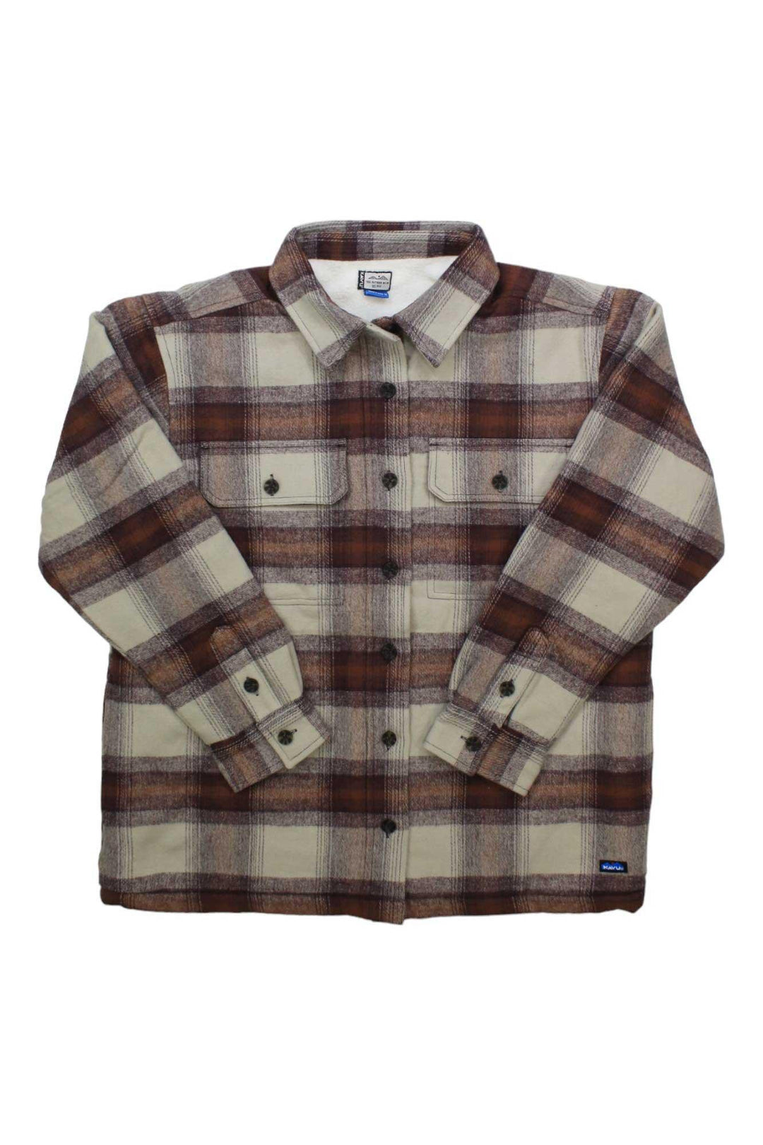 The KAVU Women's Pinedrona Shirt Jacket is a cozy, boyfriend-fit staple perfect for outdoor adventures. Crafted with a durable 1% cotton twill exterior and plush Sherpa fleece lining, this jacket delivers superior warmth and comfort no matter the elements.