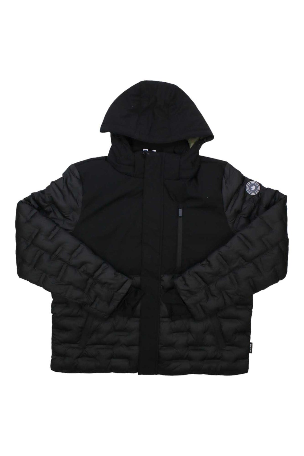 The NOIZE Men's Dawson Jacket is designed for the modern man who seeks style and comfort in the great outdoors. This sleek black puffer keeps you cozy with its insulated quilted design, while the attached hood and front zipper closure with flap lock in warmth. Crafted from durable nylon/polyester, it's built to withstand daily urban adventures.