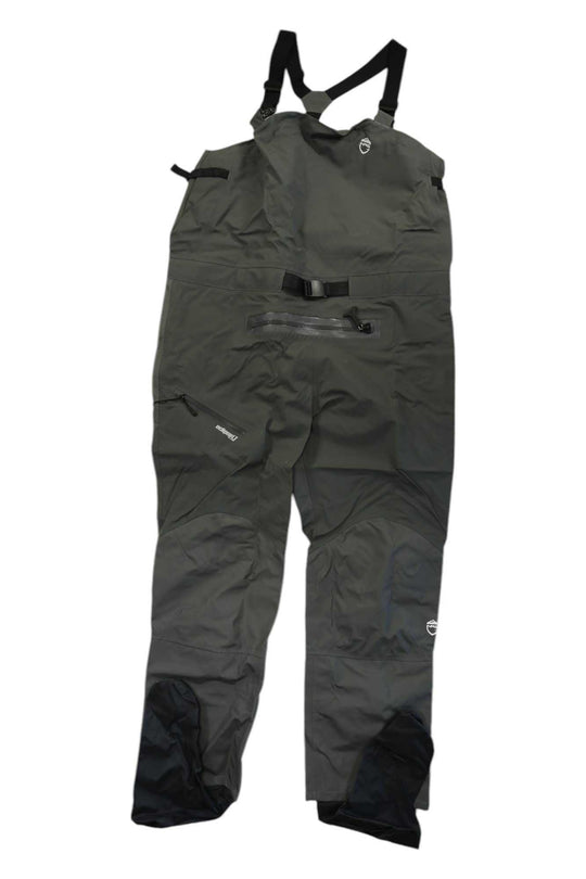 The NRS Sidewinder Bib keeps you dry and comfortable while wading through streams and rivers. Made with Eclipse 4-layer waterproof-breathable fabric, it offers superior protection against moisture while allowing perspiration to escape, keeping you cool and dry. The adjustable suspender system ensures a customized fit, while the TIZIP MasterSeal relief zipper provides convenience when nature calls.