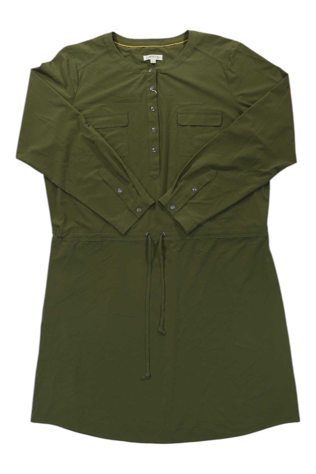 The Orvis Womens Florence Travel Dress is a versatile wardrobe essential designed for your next adventure. Crafted from a lightweight, wrinkle-resistant polyester-spandex blend, this dress offers unrestricted mobility and long-lasting comfort. Its roll-tab sleeves and knee-length cut keep you covered, while the timeless olive green hue complements any setting.