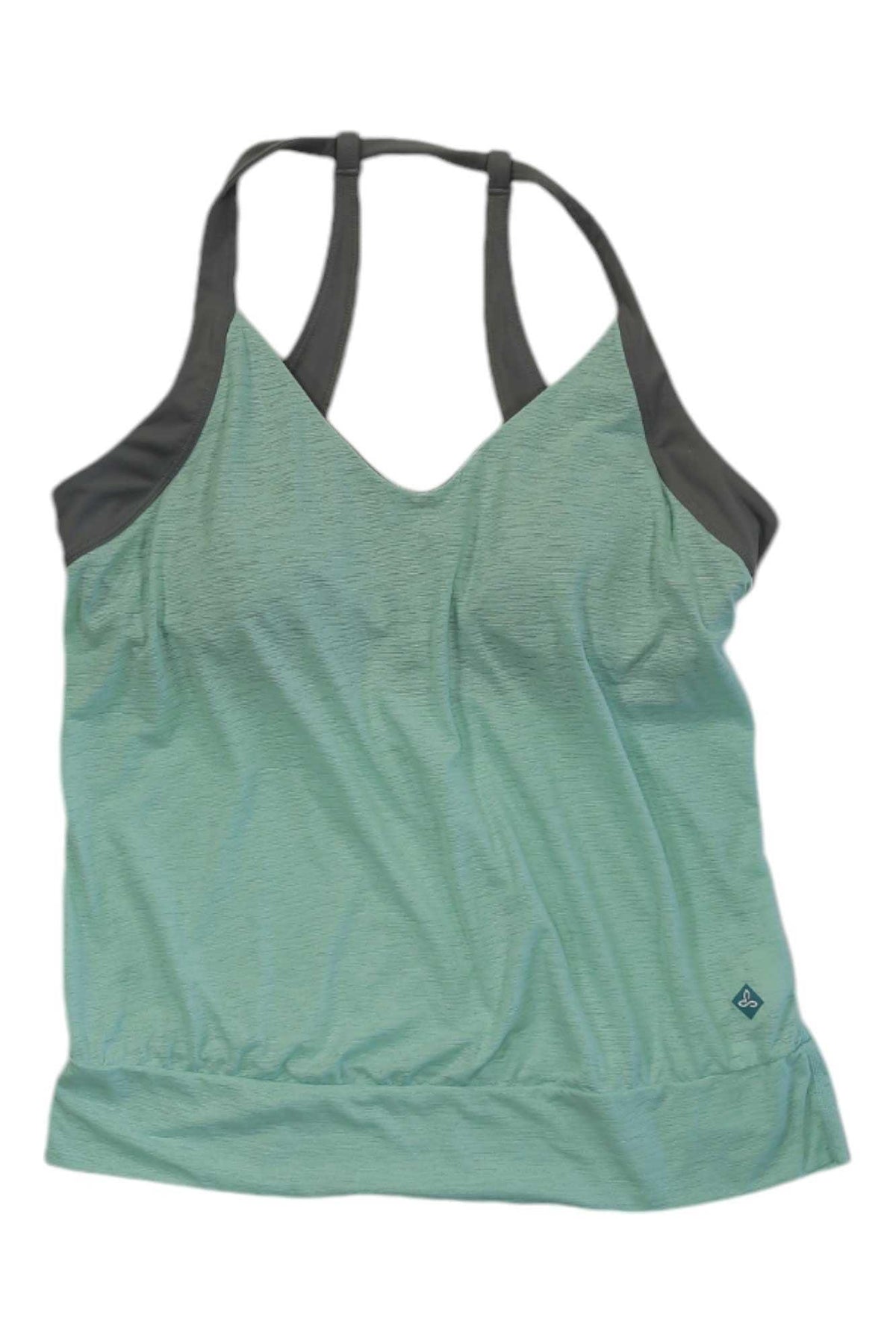Slip into this sleeveless top with its flattering v-neckline before your morning yoga flow. The soft, textured fabric in calming hues of light green and dark green trim allows freedom of movement as you transition through poses. After your practice, throw on this versatile piece to run errands in total comfort. Stay motivated to conquer your day in the prAna Bedrock Top.