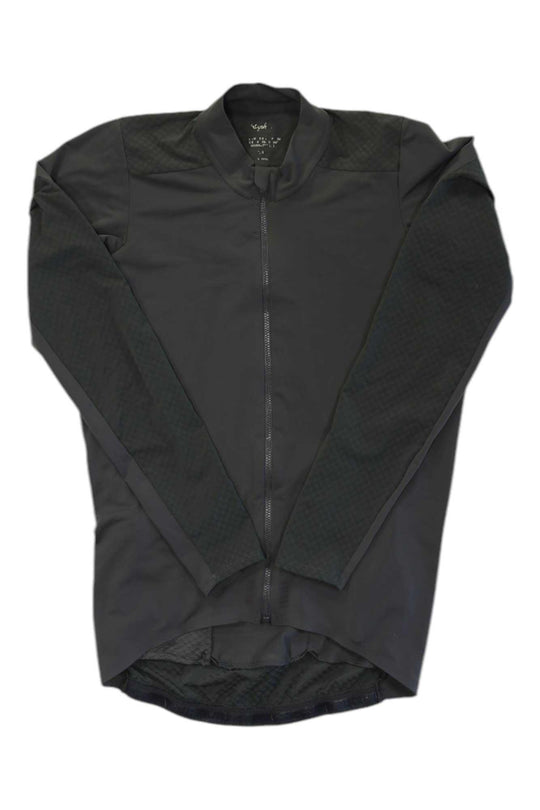 The Pro Team Long Sleeve Aero Jersey by Rapha is engineered for superior aerodynamic performance. Its refined construction for 224 yields the fastest jersey yet, featuring a proprietary Clima fabric made in Italy for maximum gains. The compressive fit and breathable material combination keep you cool and engaged even on scorching summer rides.