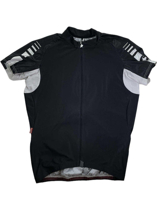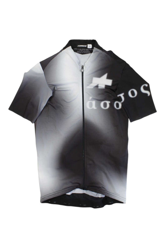 This Assos Short Sleeve Cycling Jersey is designed to provide comfort and performance for cyclists. It is made from a lightweight, breathable fabric that wicks away moisture and keeps you cool and dry. The jersey features a full-length zipper, three rear pockets, and a reflective logo for visibility. The fit is tailored to provide a snug, comfortable fit that won't restrict movement.