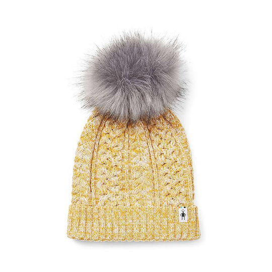 Whether you're hitting the slopes for a day of skiing or bundling up for a crisp morning hike, the Lodge Girl Beanie provides superior warmth and protection from the elements. Its unique textured pattern and vibrant yellow and white mixed color design, complete with a plush gray faux fur pom-pom, add a playful touch to your outdoor ensemble. Slip it on and embrace the great outdoors with confidence and style.