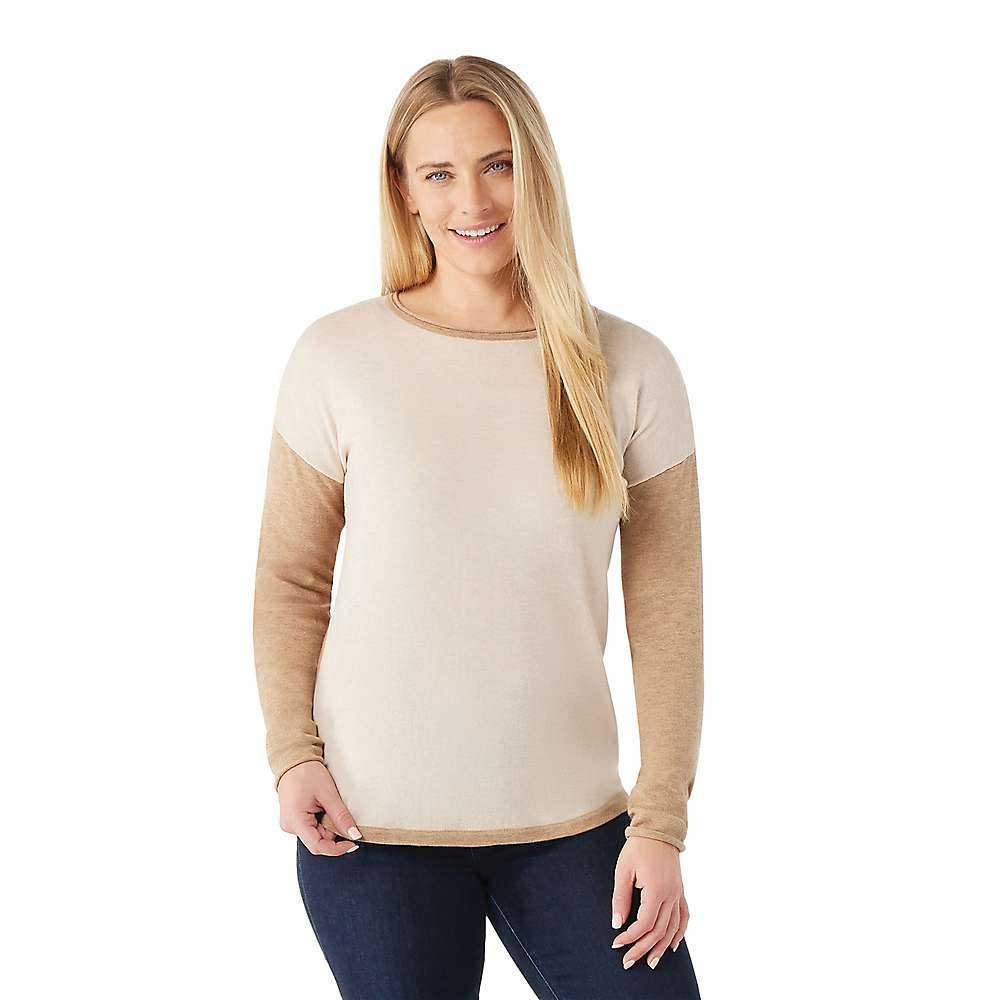 The Smartwool Women's Shadow Pine Colorblock Sweater offers cozy comfort and rugged performance in the great outdoors. Crafted from a premium Merino wool blend that's soft, lightweight, and regulates body temperature, this versatile layer keeps you warm on chilly days without weighing you down. Its relaxed fit and dropped shoulders allow unrestricted movement, while rolled collar and cuff details add an effortless, casual vibe.