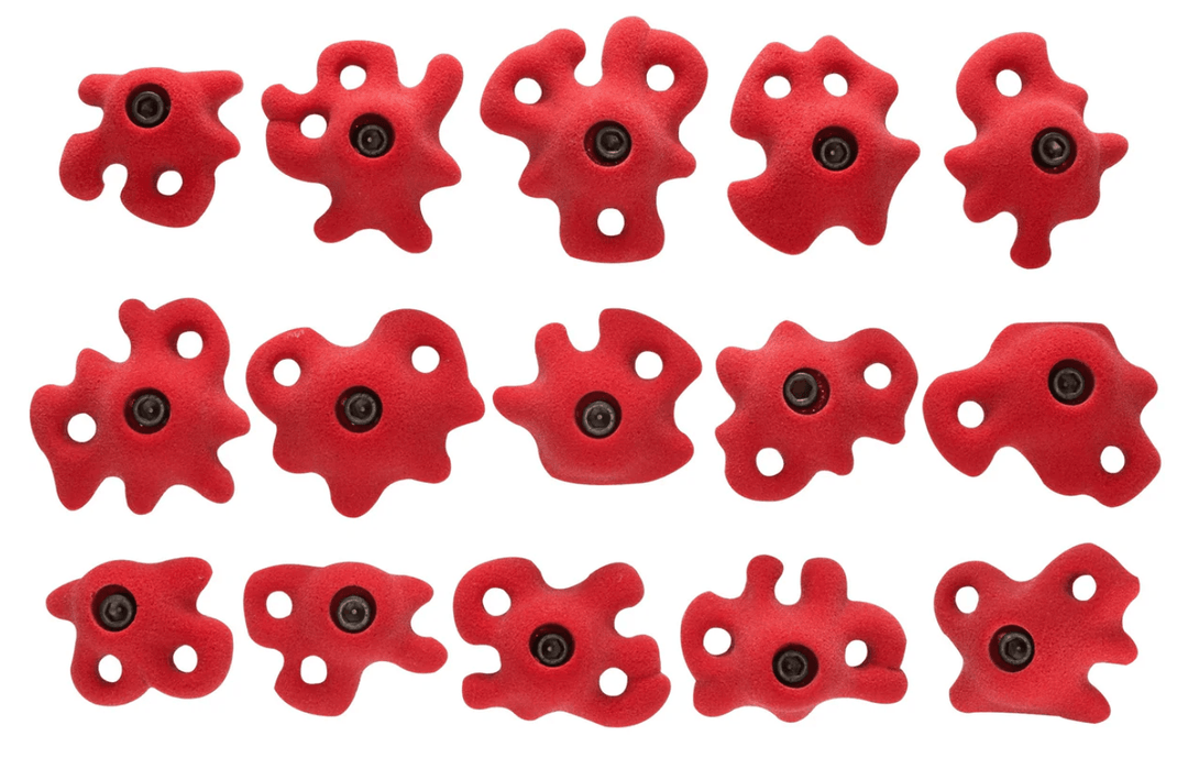 SPECS: Weight: 3.2 lbs DESIGN & DETAILS: Foot holds decorated with holes Design resembles fun and funky fungus Provides large ribs for toe and heel hook Comes with 15 holds Easy difficulty Hardware included Meets USA Climbing National Standards TECH SPECS: Incut: 3 (flat) Recommended angle: Slab, vert, 15 degrees, 3 degrees, and 45 degrees.
