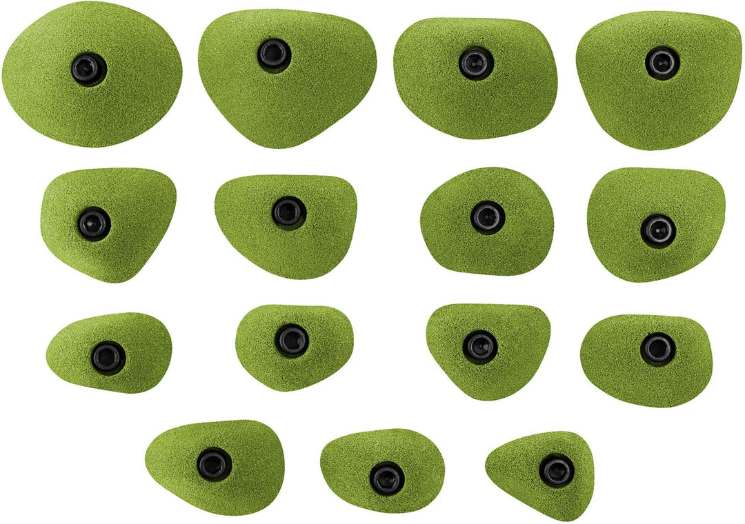 SPECS: 15-pack of holds Weight: 2 lbs DESIGN & DETAILS: Smooth, round foot hold training grips Hardware is included Easy difficulty Shaper: Louie Anderson TECH SPECS: Incut 3 (flat) Recommended angle: slab, vert, 15 degree, 3 degree, 45 degree