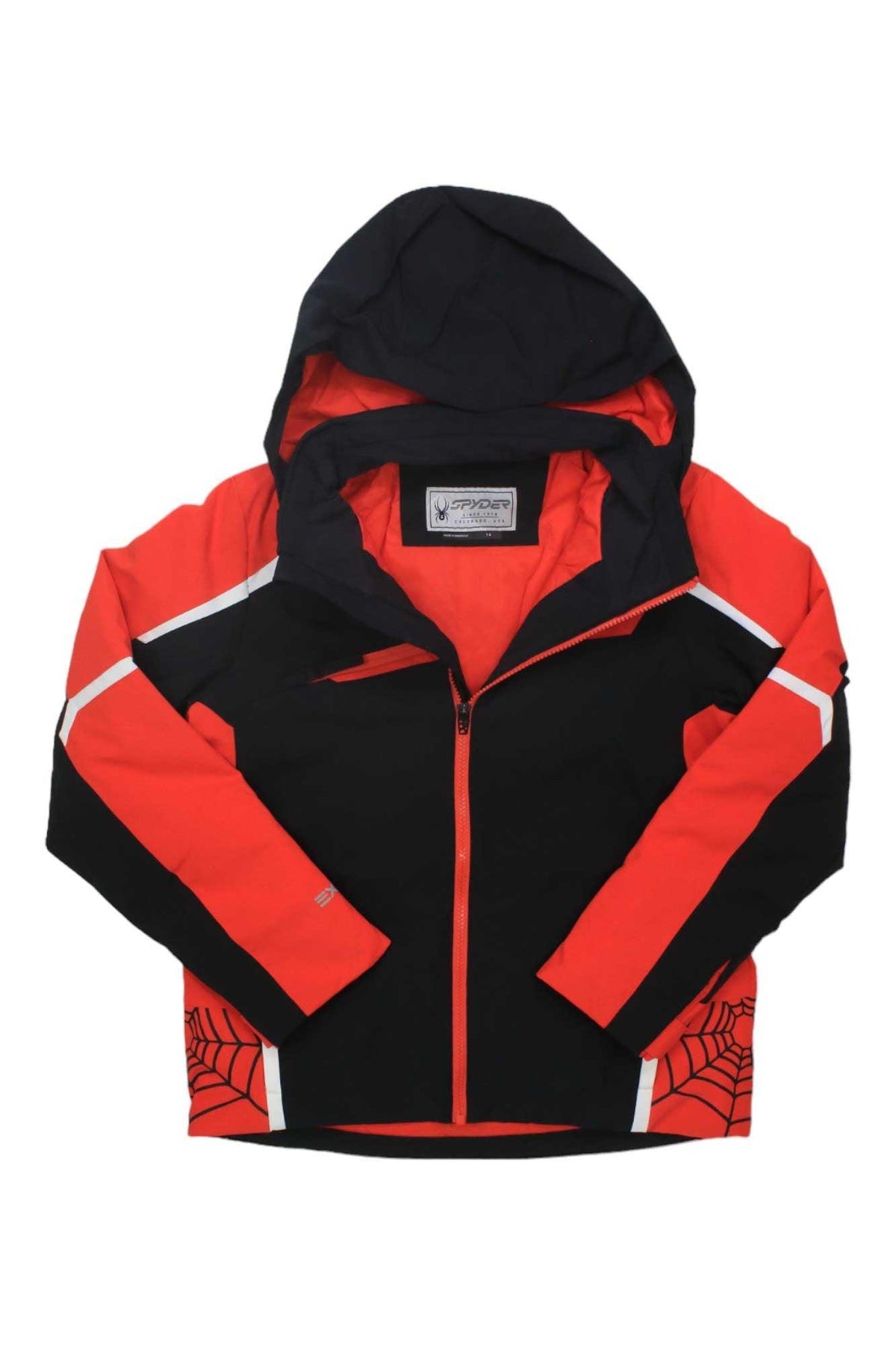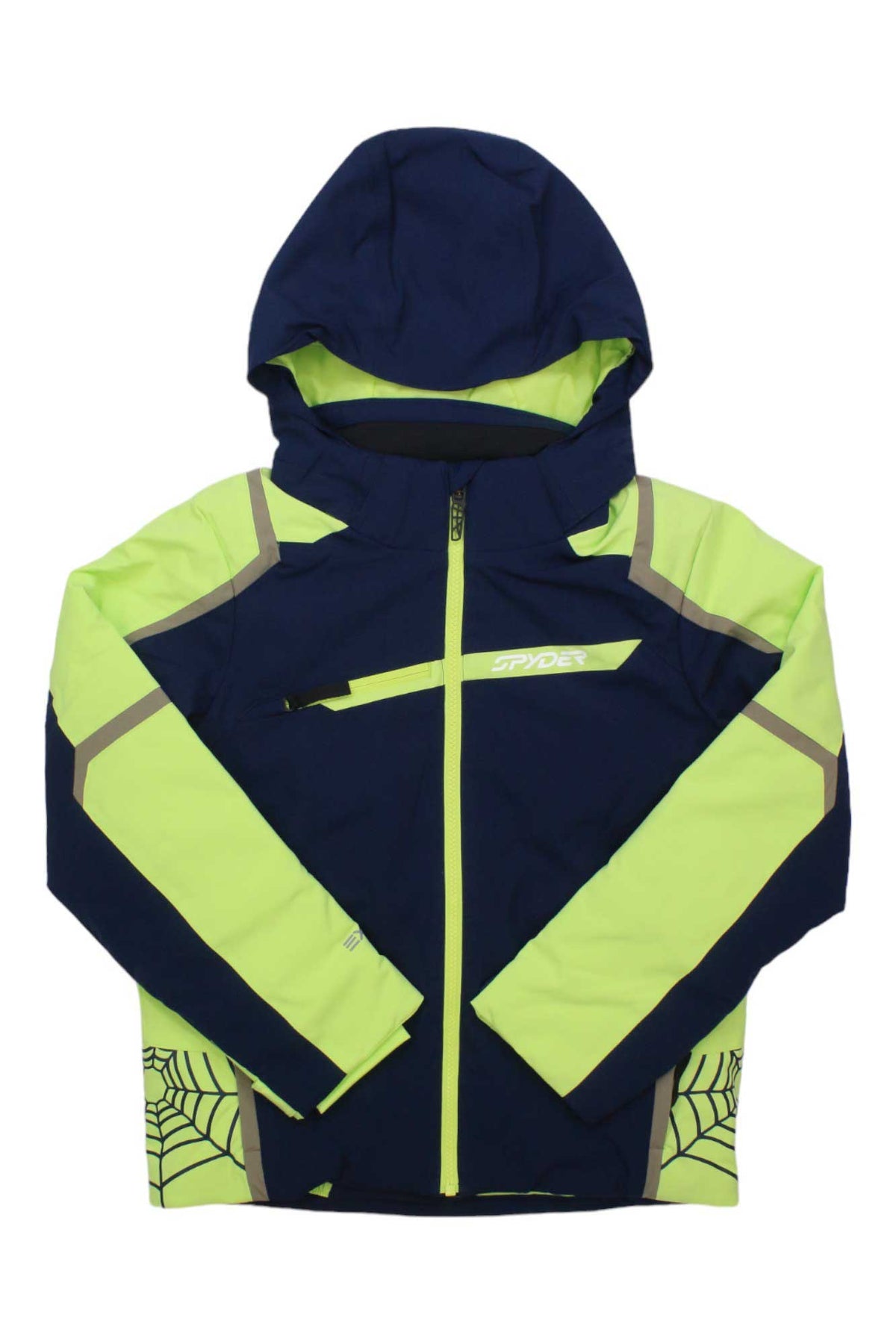 Little racers with big style meet their match in the challenger jacket, one of Spyder's best-sellers with its souped-up, custom screen-printed Spyder webbing down the side and reflective detailing. It includes all the characteristics of Spyder's top-shelf jackets including a removable hood with inner hood gaiter, taped seams, and a powder skirt with snaps and elastic grip. Insulated with PrimaLoftÆ Black Eco insulation, lined with a 1k/1k stretch EXO SHIELD polyester plain weave laminate and water repellent fabric, the challenger goes unchallenged.