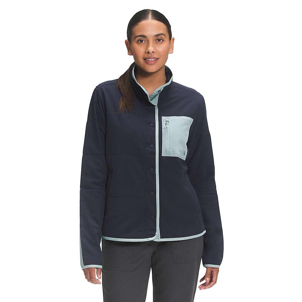 The North Face Women's Snap-Front Mountain Sweatshirt is a versatile insulated jacket built for outdoor exploration. Its Ventrix stretch synthetic insulation and water-resistant finish provide lightweight warmth without restricting movement, making it perfect for chilly hikes or active days around town.