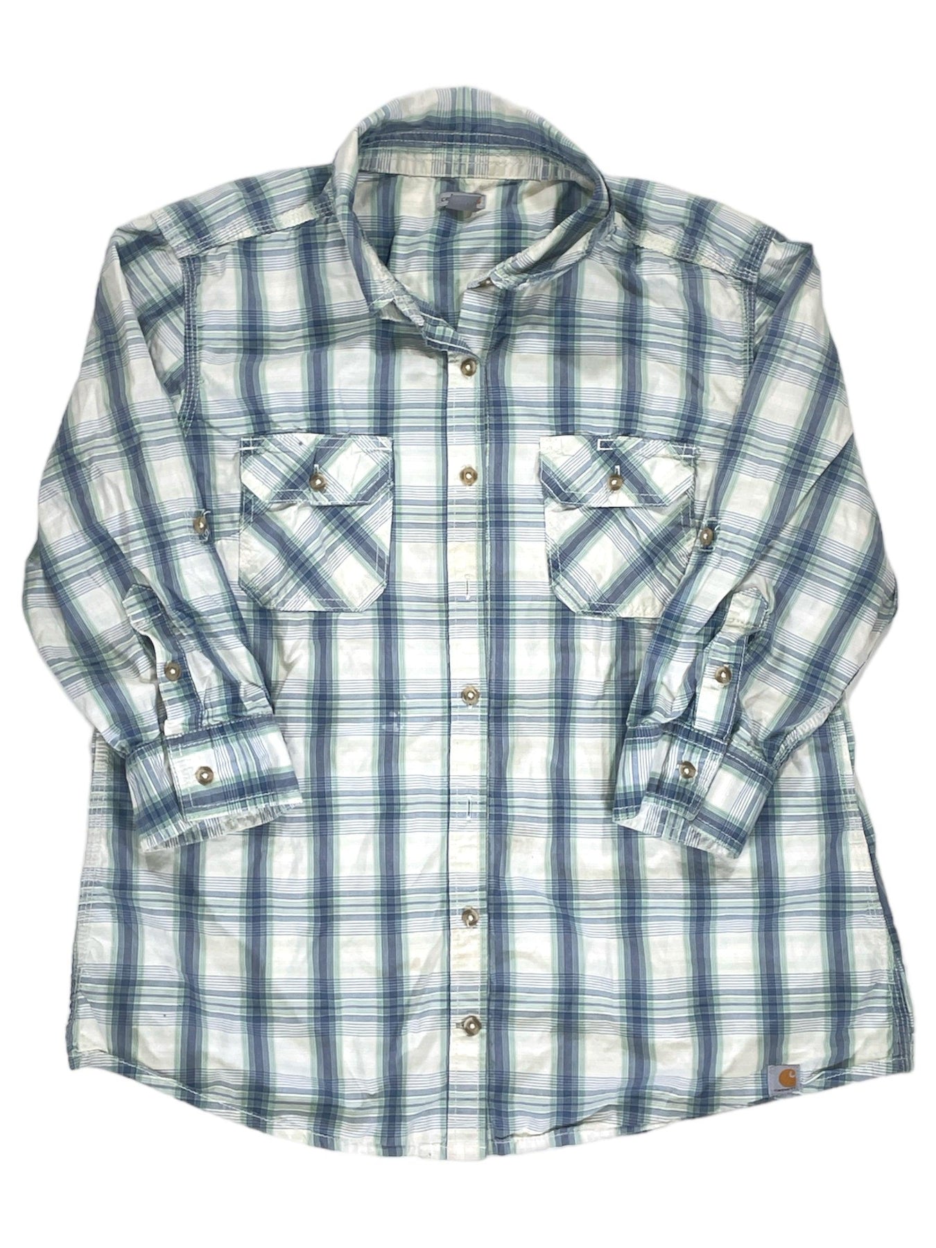 Womens 3/4 Sleeve Plaid Button Up